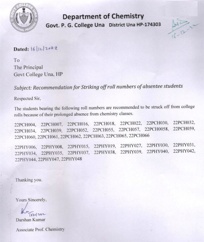 Struck off Roll Numbers list of BSc 2nd year session 2023-24